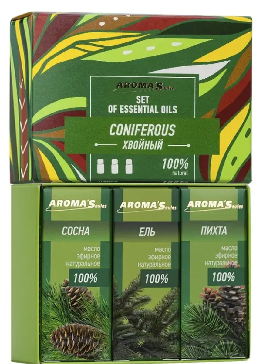 Набор эфирных масел Aroma'Saules "Хвойный" (масло эфирное ель, масло эфирное пихта, масло эфирное сосна), 3 х 10 мл