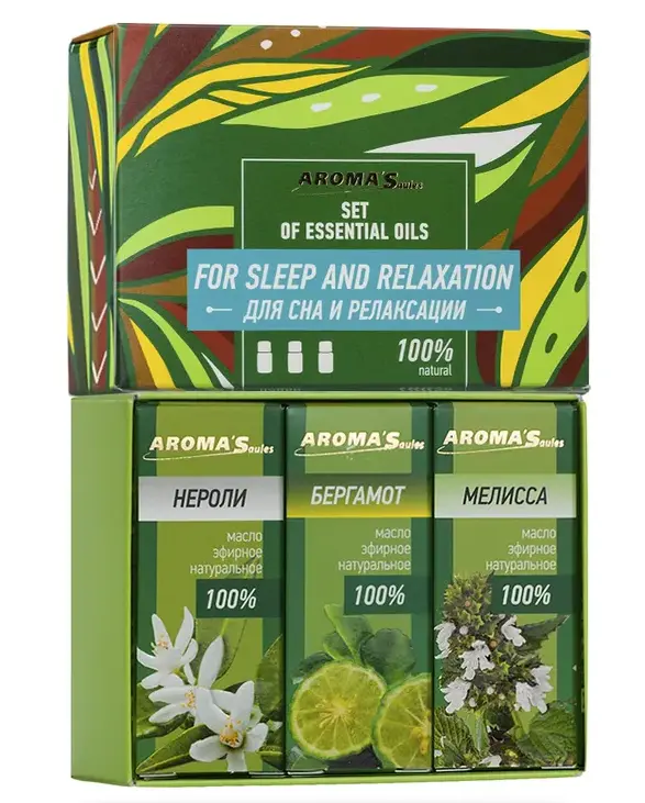 Набор эфирных масел Aroma'Saules "Для сна и релаксации" (масло эфирное бергамот, масло эфирное мелисса, масло эфирное нероли), 3 х 10 мл купить в Другом по доступной цене