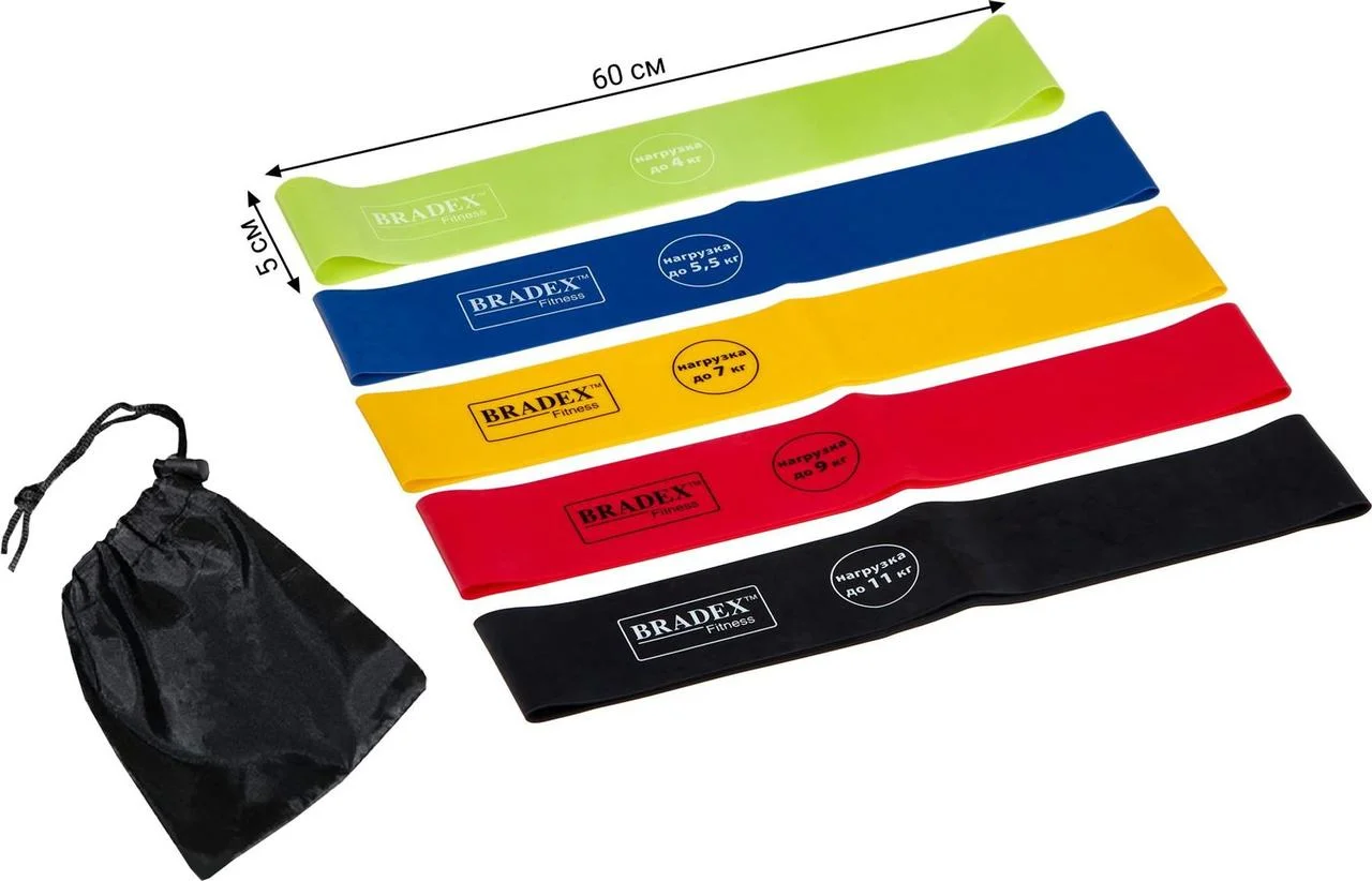 Набор из 5-ти резинок для фитнеса Bradex SF 0673, нагрузка до 4 / 5,50 / 7 / 9 / 11 кг