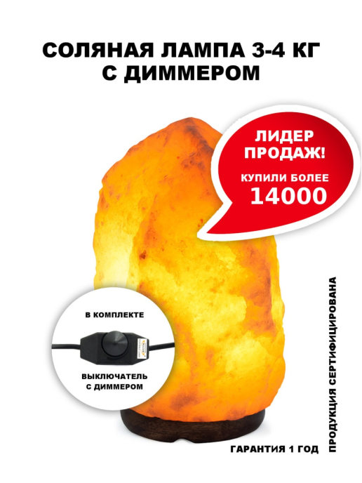Солевая лампа Stay Gold с диммером, 3-4 кг купить в Другом по доступной цене
