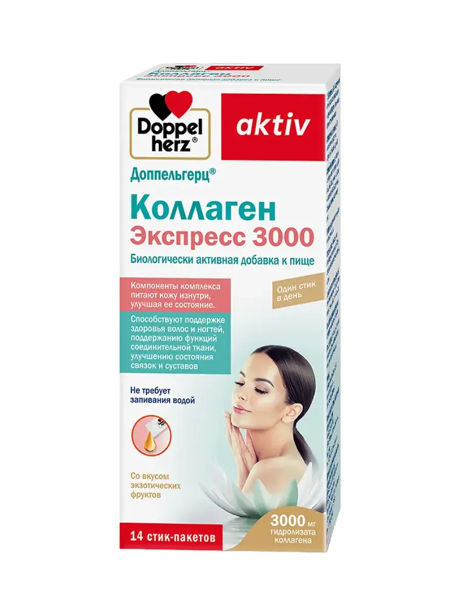 БАД Doppelherz®/Доппельгерц Коллаген Экспресс 3000 жидкость в стик-пакетах 11 г №14, для кожи, волос и ногтей, для суставов и связок купить в Другом по доступной цене