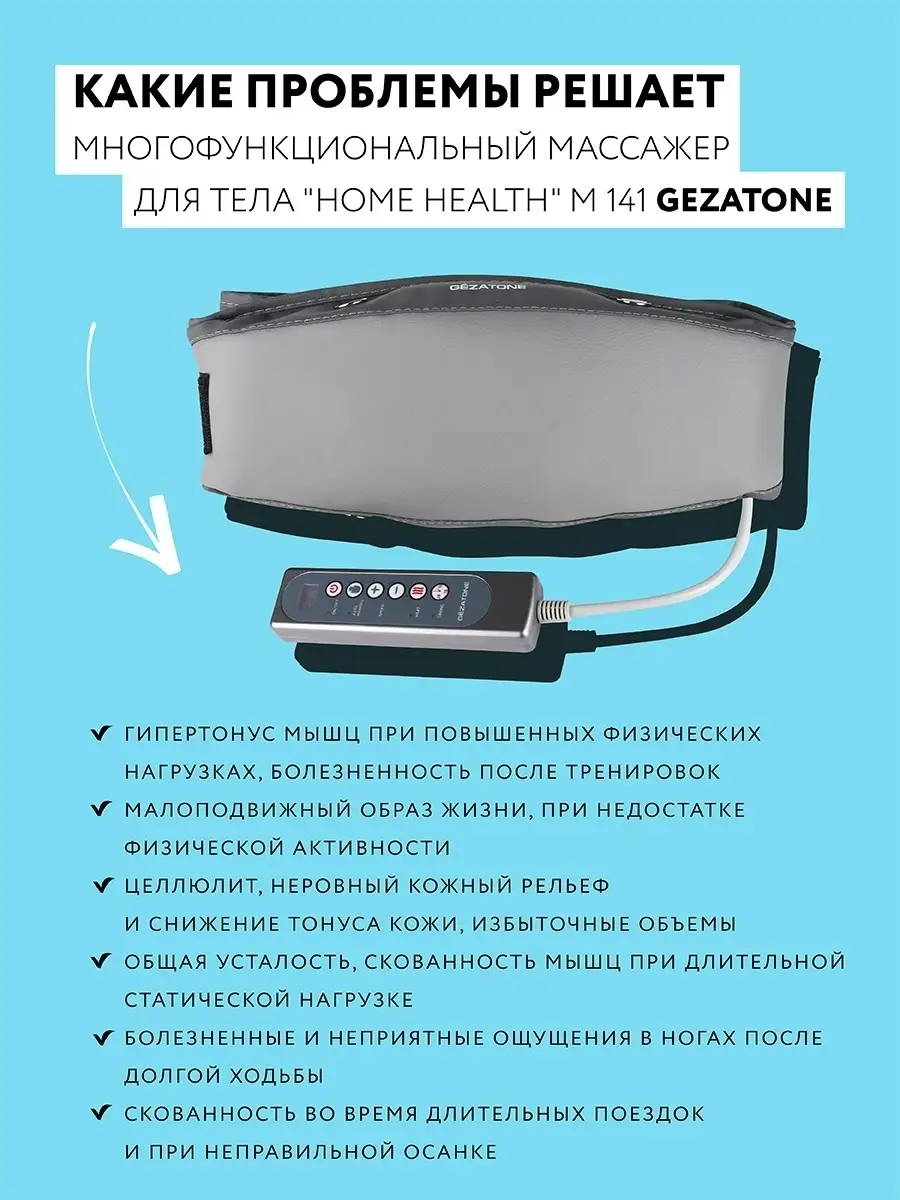 Многофункциональный массажер для тела Gezatone M141 Home Health — это эффективное средство для борьбы с лишним весом и другими несовершенства-ми фигуры.